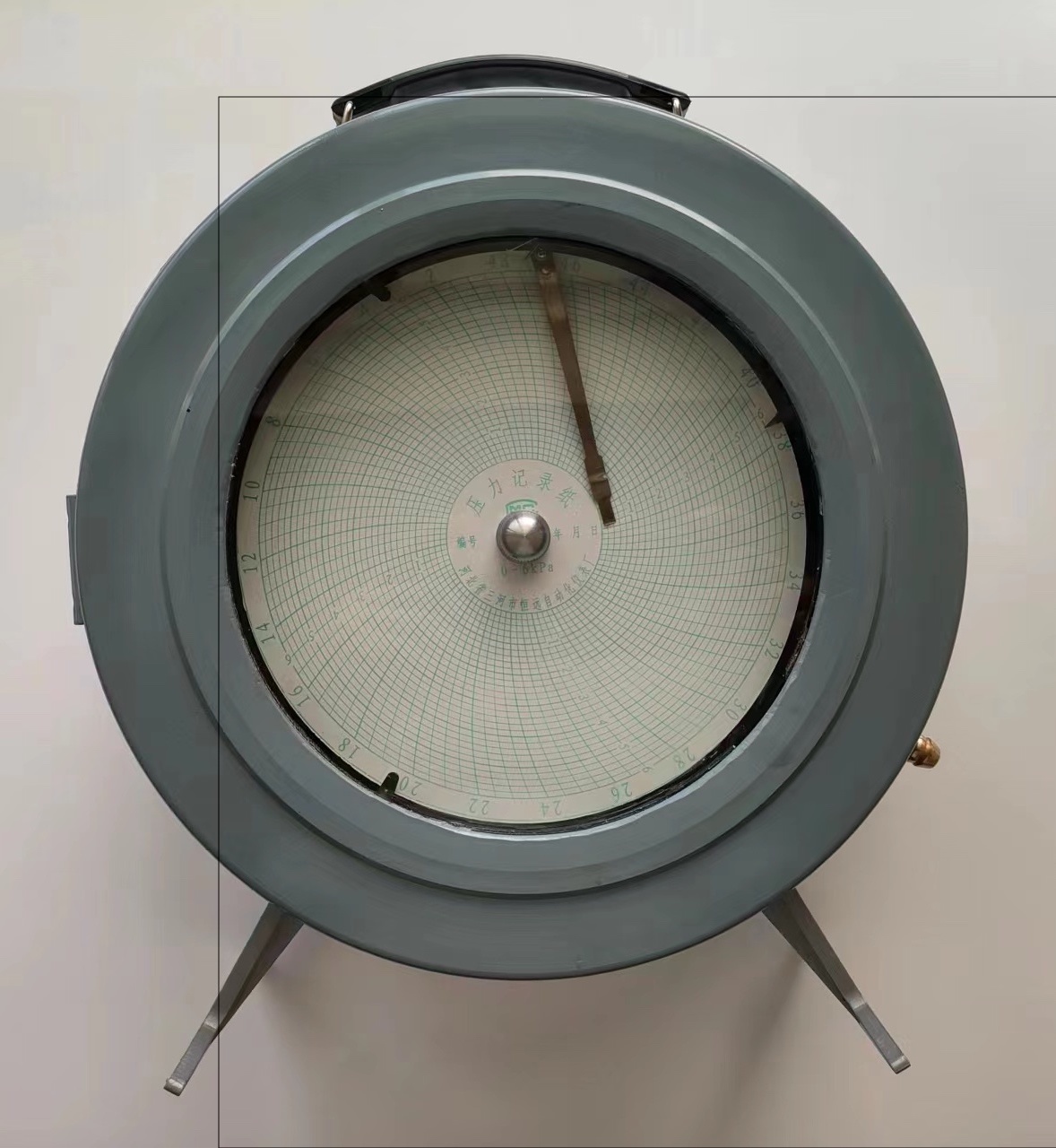 记录部分采用电子石英机芯,由5号电池作电源,通过转盘、卡夹驱动记录纸以顺时针方向运转, 一周为24小时。记录笔在图纸上的径向指示为记录下的被测介质的瞬时间压力值。
